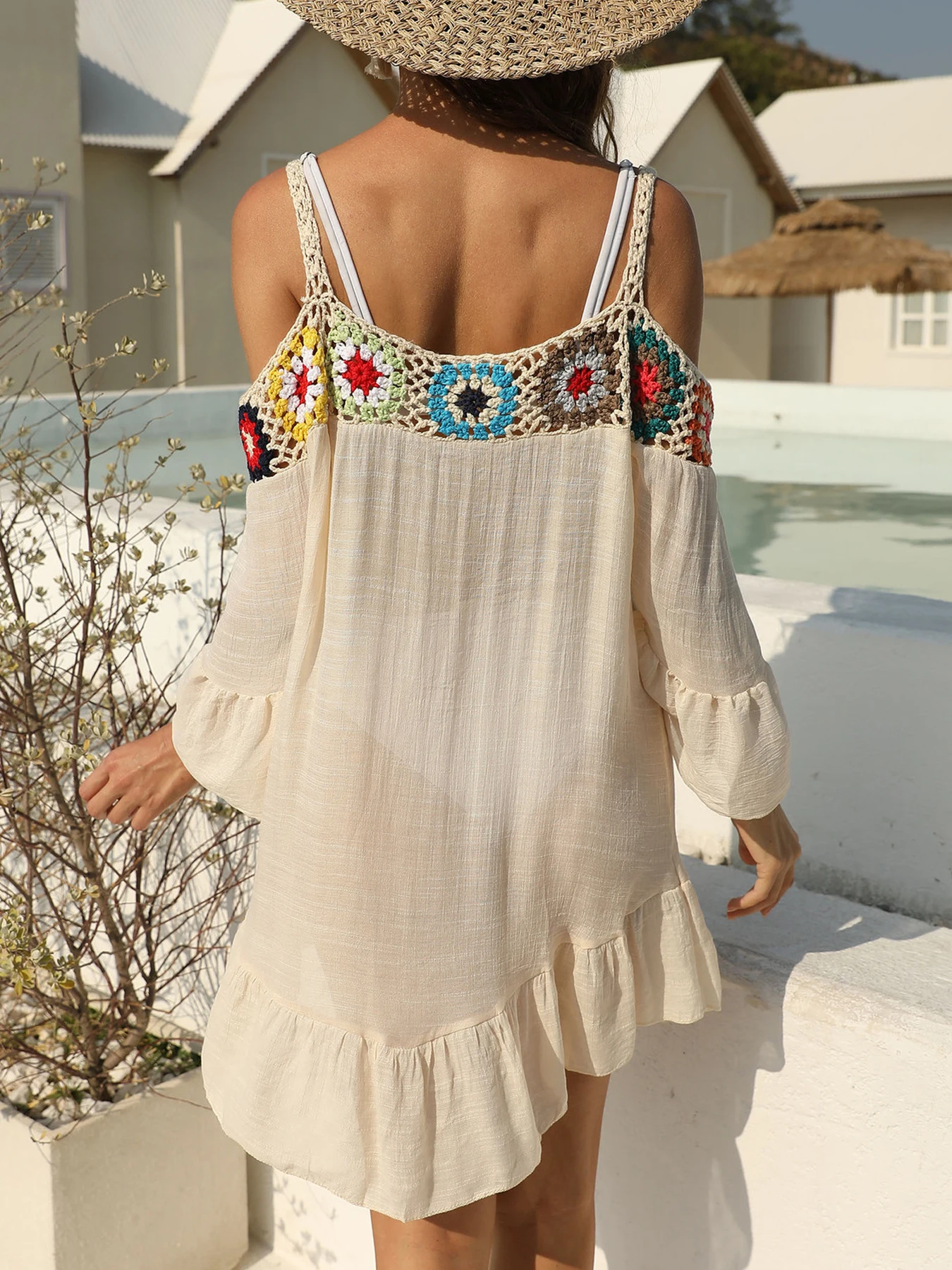 Turn heads at the beach or poolside with this Handmade Crochet Patchwork One-Shoulder Bikini Cover-Up. Designed with a stylish asymmetrical shoulder and intricate crochet detailing, this piece blends boho charm with modern beach fashion. The see-through patchwork design adds a playful, flirty touch while still providing light coverage over your swimsuit. Lightweight and breathable, it’s perfect for hot summer days, pool parties, and tropical holidays. The loose, comfortable fit allows easy layering over bikinis or one-piece swimsuits. Crafted to feel soft on the skin, it’s ideal for all-day wear from the beach to a seaside café. The unique handmade look makes each cover-up feel special and fashion-forward. Easy to slip on and off, it’s a must-have for vacations, resorts, and cruises. Pair it with sandals and sunglasses for a relaxed yet stylish beach-ready outfit. This crochet cover-up is the perfect balance of casual elegance and summer fun.
